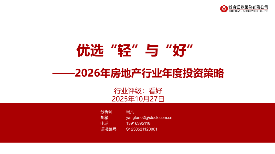 【浙商证券】【202510】2026年房地产行业年度投资策略:优选“轻”与“好”-28页