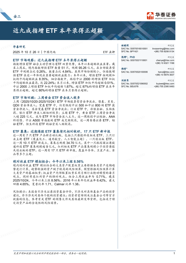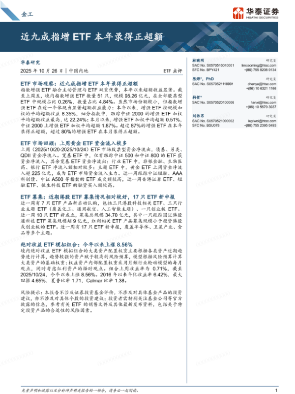 【华泰证券】【202510】ETF点评:近九成指增ETF本年录得正超额-11页