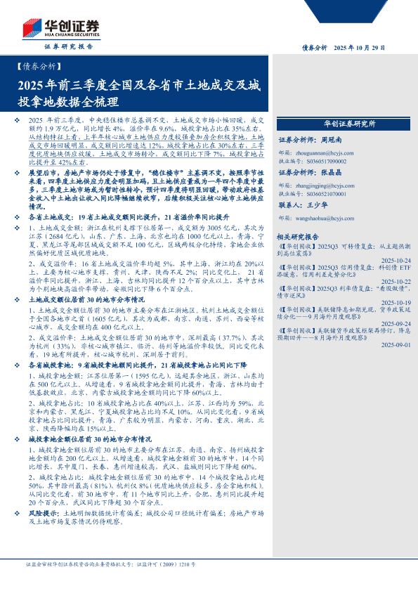 【华创证券】【202510】2025年前三季度全国及各省市土地成交及城投拿地数据全梳理-13页