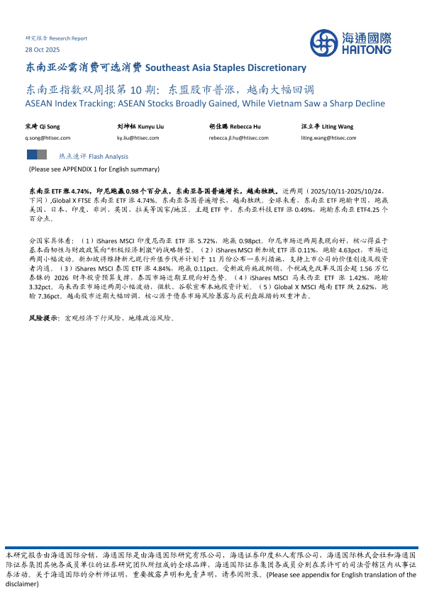 市场回顾 区域经济 东南亚股市 ETF分析 投资策略
