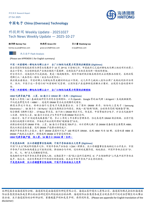 【海通国际】【202510】中国电子 China(Overseas) Technology 科技新闻 Weekly Update- 20251027-12页