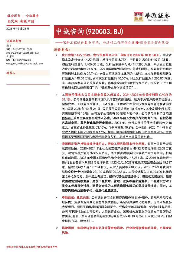 【华源证券】【202510】中诚咨询(920003)深耕工程造价服务市场,全过程工程咨询和BIM+服务具备领先优势-19页