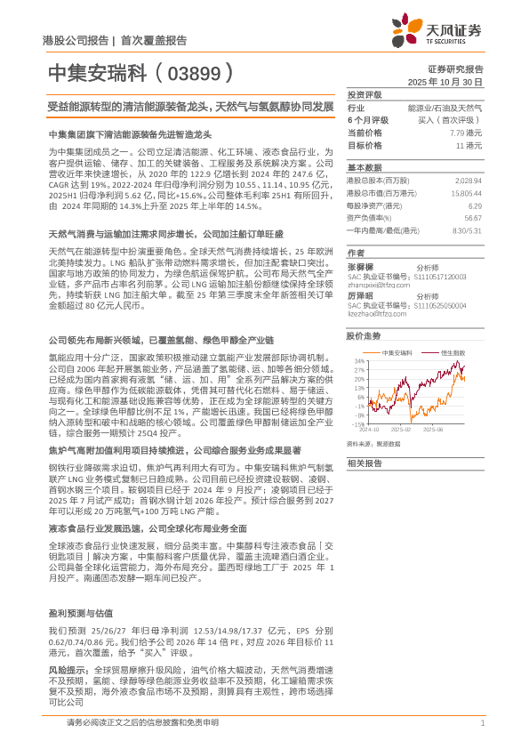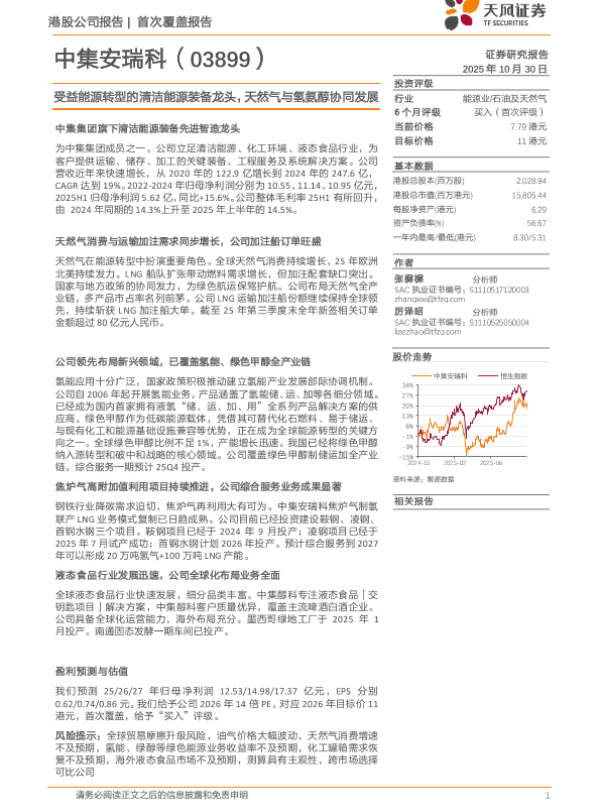 【天风证券】【202510】中集安瑞科(03899) 证券研究报告 2025年 10月 30日 投资评级 行业 能源业/石油及天然气-29页