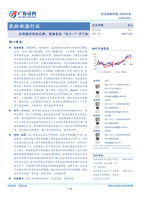【广发证券】【202510】农林牧渔行业:本周猪价迎来反弹,宠物食品“双十一”开门红-18页