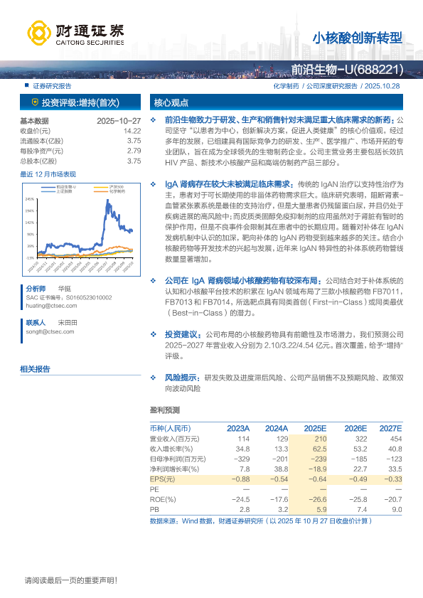小核酸药物 公司研究 艾可宁 前沿生物 IgA肾病