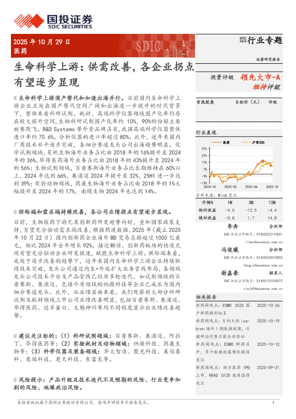 【国投证券】【202510】生命科学上游:供需改善,各企业拐点有望逐步显现-17页