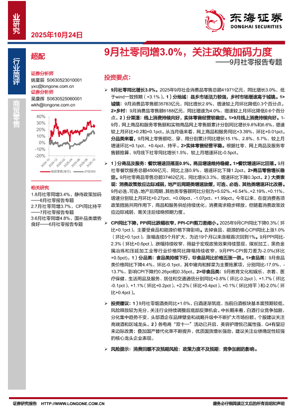 【东海证券】【202509】9月社零同增3.0%,关注政策加码力度-14页