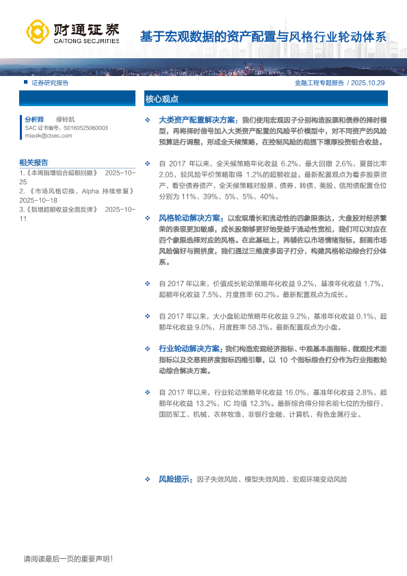 【财通证券】【202510】基于宏观数据的资产配置与风格行业轮动体系-32页