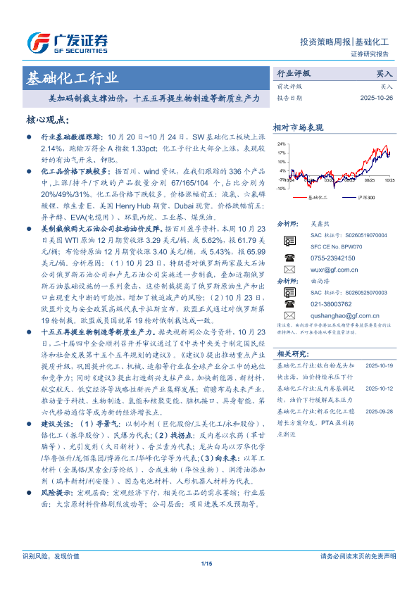 【广发证券】【202510】基础化工行业:美加码制裁支撑油价,十五五再提生物制造等新质生产力-15页
