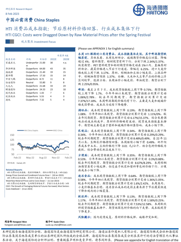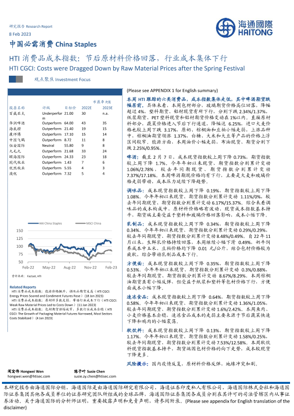 【海通国际】【20230208】HTI消费品成本指数:节后原材料价格回落,行业成本集体下行-16页