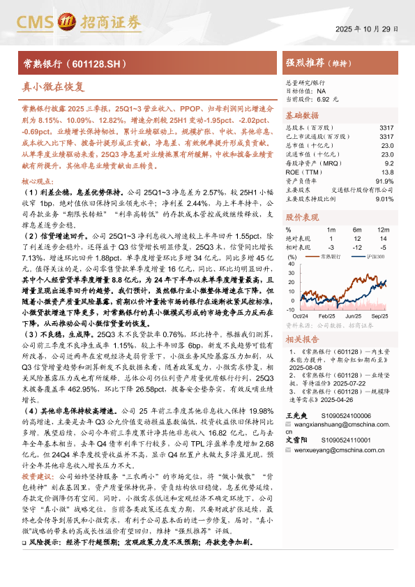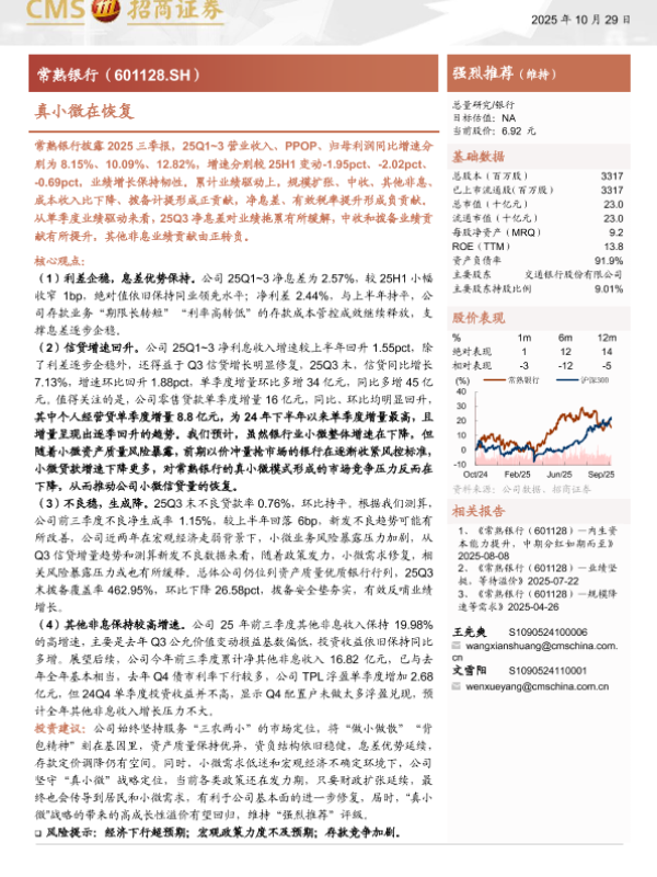净息差 真小微 资产质量 常熟银行 业绩分析