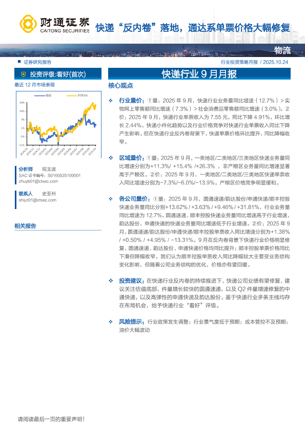 【财通证券】【202510】快递“反内卷”落地,通达系单票价格大幅修复-11页