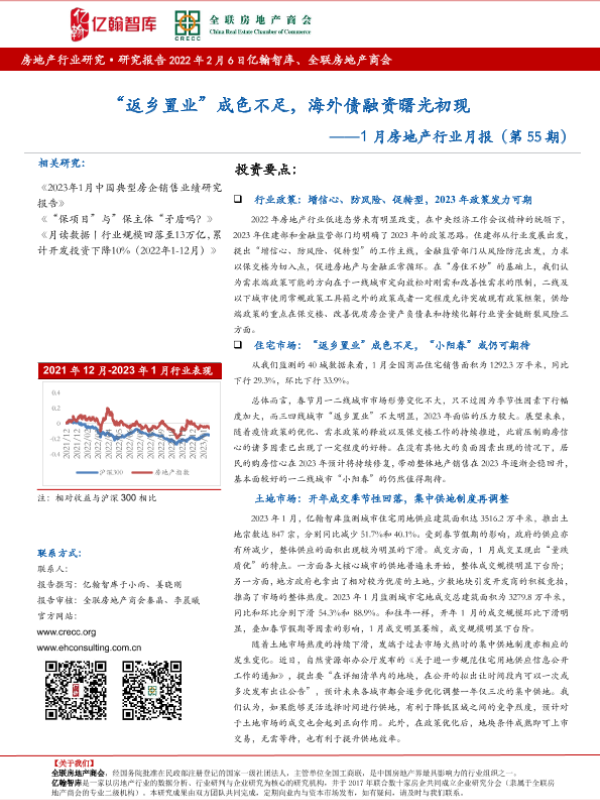 【亿翰智库】【20230101】1月房地产行业月报(第55期):“返乡置业”成色不足,海外债融资曙光初现-20页