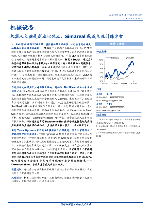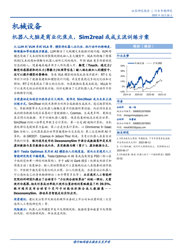 【国盛证券】【202410】机械设备行业专题研究:机器人大脑是商业化焦点,Sim2real或成主流训练方案-16页