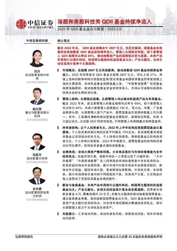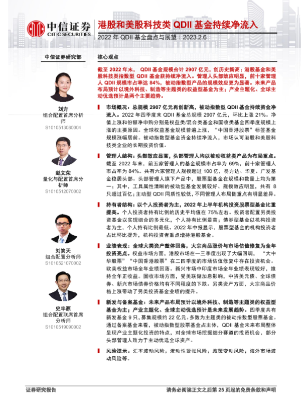 【中信证券】【20230206】2022年QDII基金盘点与展望:港股和美股科技类QDII基金持续净流入-26页
