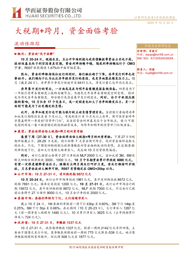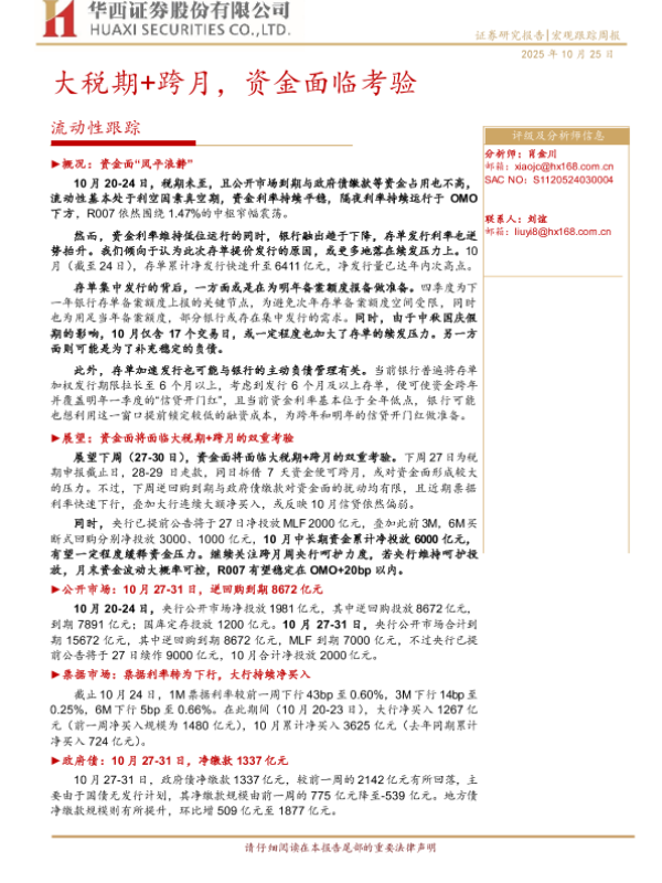 【华西证券】【202510】流动性跟踪:大税期+跨月,资金面临考验-16页