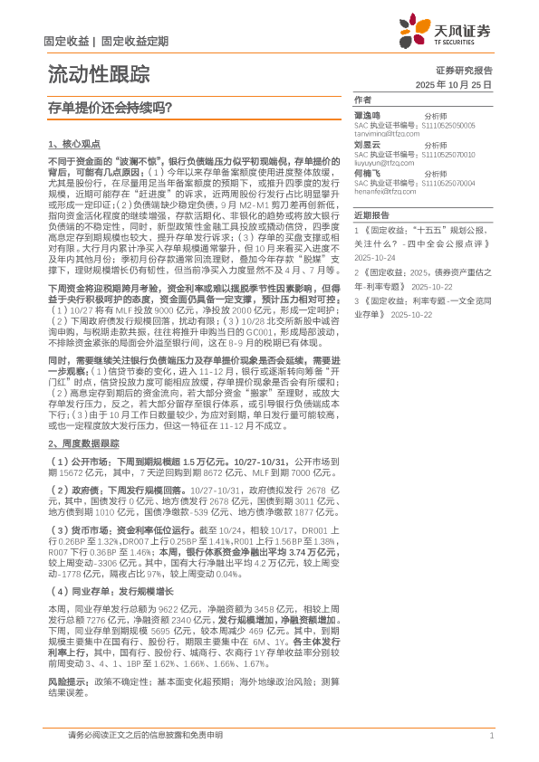 【天风证券】【202510】流动性跟踪:存单提价还会持续吗?-22页