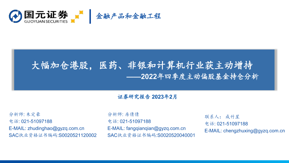 【国元证券】【20230204】2022年四季度主动偏股基金持仓分析:大幅加仓港股,医药、非银和计算机行业获主动增持-69页