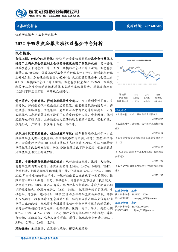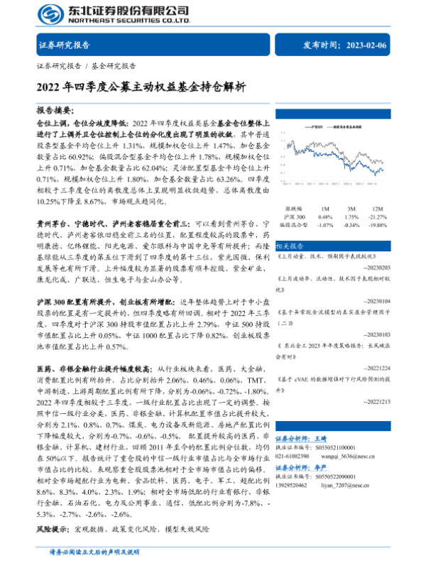 【东北证券】【20230206】2022年四季度公募主动权益基金持仓解析-24页