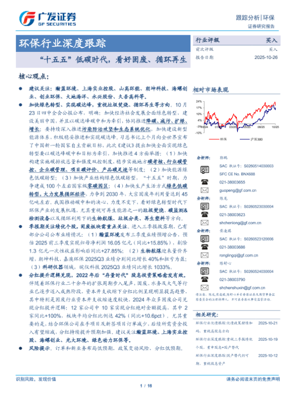 【广发证券】【202510】环保行业深度跟踪:“十五五”低碳时代,看好固废、循环再生-16页
