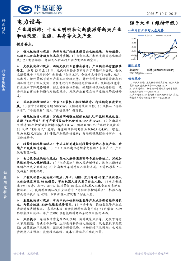 【华福证券】【202510】产业周跟踪:十五五明确壮大新能源等新兴产业和核聚变、氢能、具身等未来产业-20页