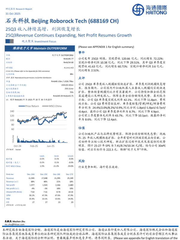 【海通国际】【202510】石头科技(688169)25Q3收入持续高增,利润恢复增长-12页