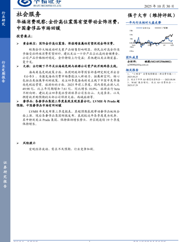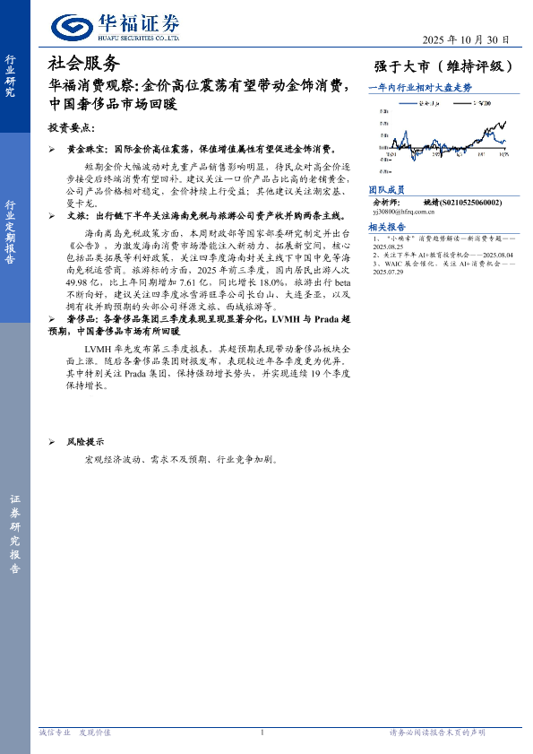 【华福证券】【202510】社会服务行业华福消费观察:金价高位震荡有望带动金饰消费,中国奢侈品市场回暖-14页