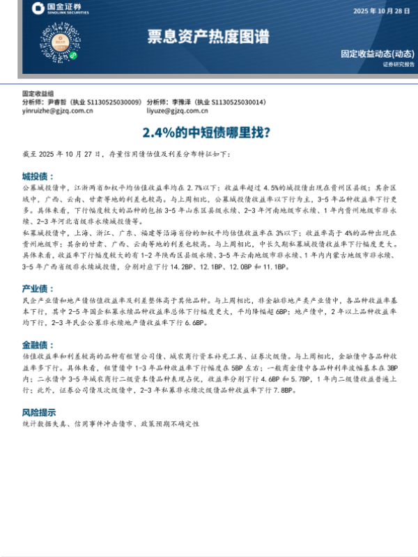 【国金证券】【202510】票息资产热度图谱:2.4%的中短债哪里找?-20页
