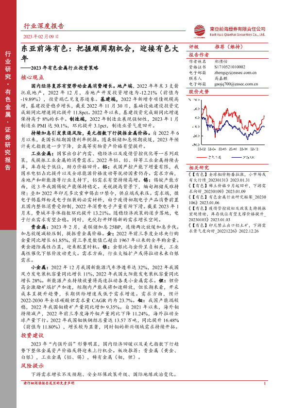 【东亚前海证券】【20230209】2023年有色金属行业投资策略:东亚前海有色:把握顺周期机会,迎接有色大年-61页
