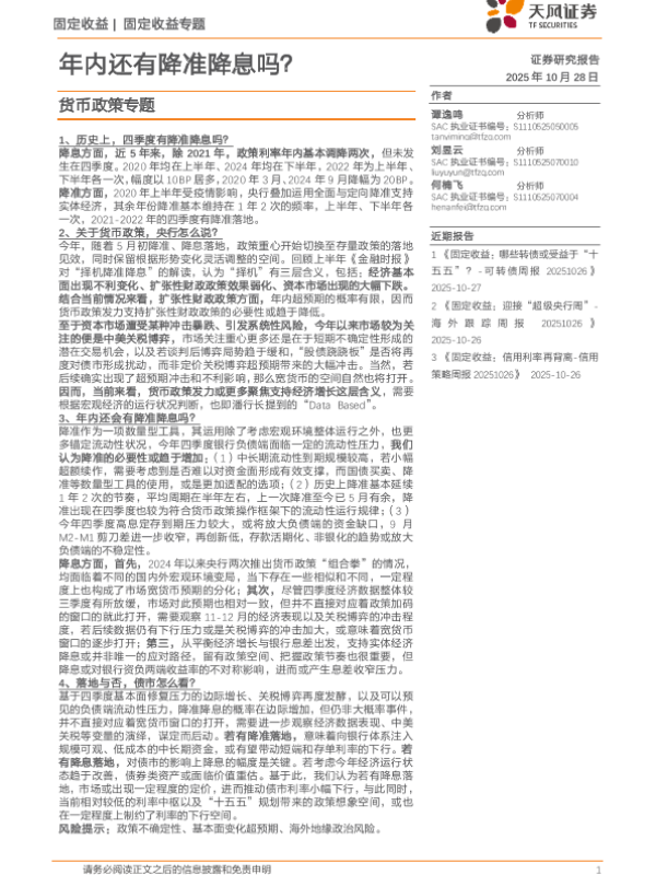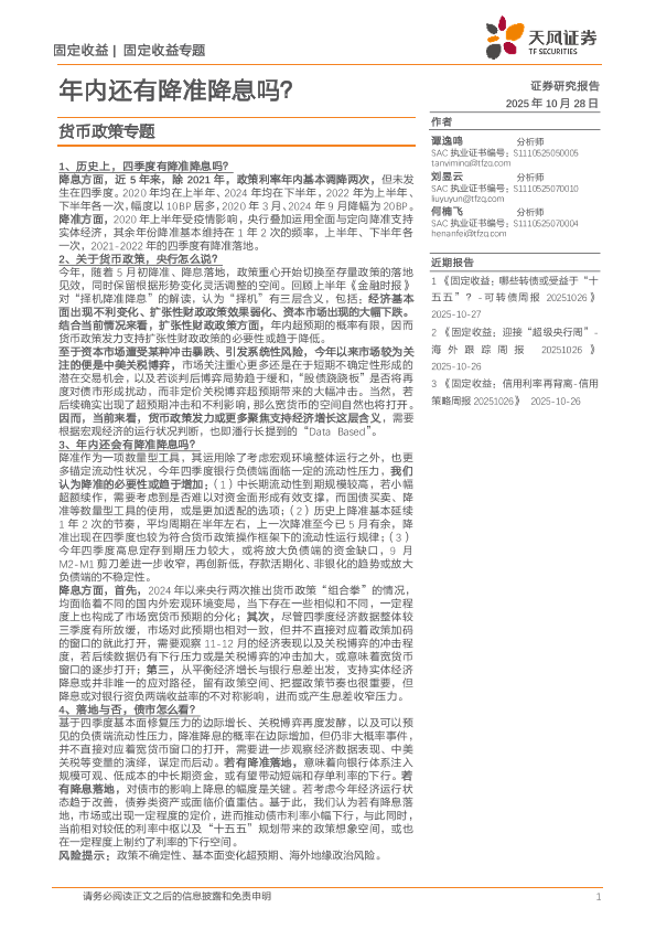 【天风证券】【202510】年内还有降准降息吗?-13页
