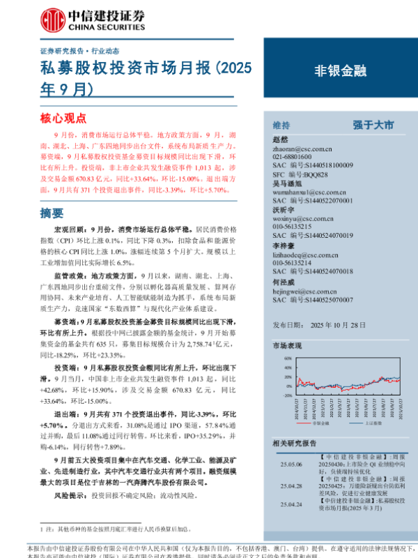 【中信建投证券】【202510】私募股权投资市场月报(2025年9月)-21页