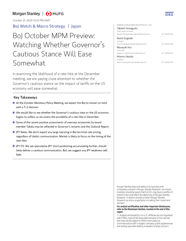 【Morgan Stanley MUFG SECURITIES CO.<D.】【202310】BoJOctober MPM Preview Watching Whether Governor's Cautious Stance WilL Ease Somewhat-13页