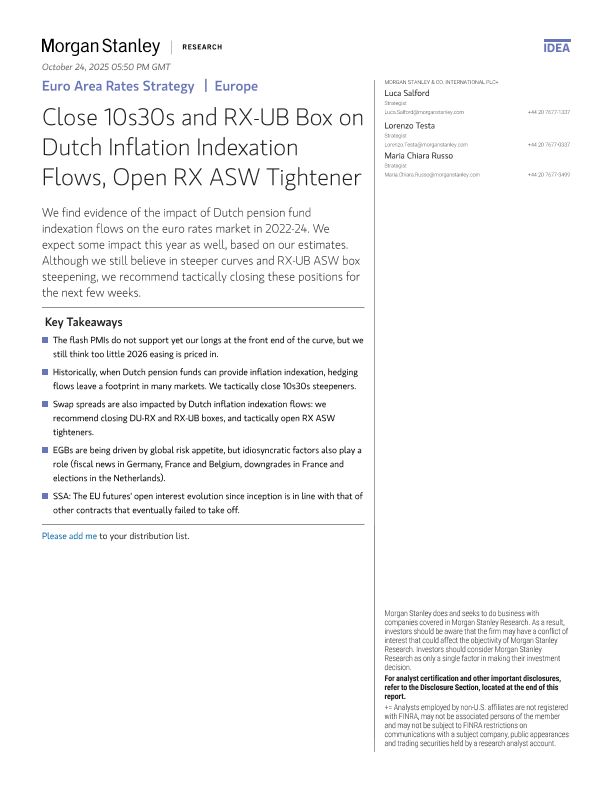 【Morgan Stanley】【2025】Euro Area Rates Strategy|Europe Close 10s30s and RX-UB Box on Dutch Inflation Indexation Flows, Open RX ASW Tightener-24页