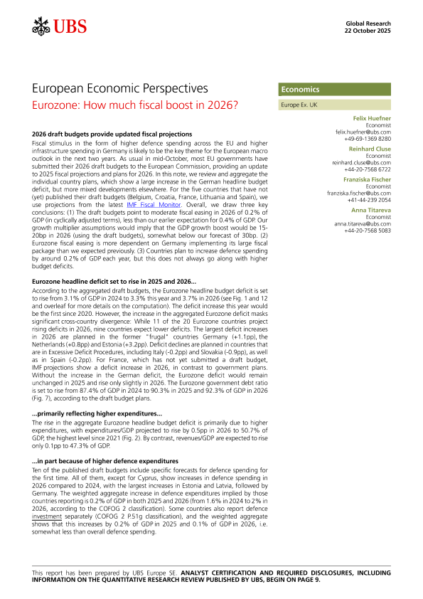 【UBS】【202510】European Economic Perspectives Eurozone How much fiscal boost in 2026?-12页