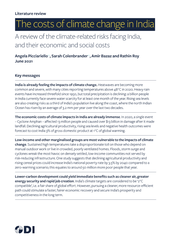 【海外发展研究所 (ODI)】【202106】印度气候变化的代价:印度面临的气候相关风险及其经济和社会代价-31页