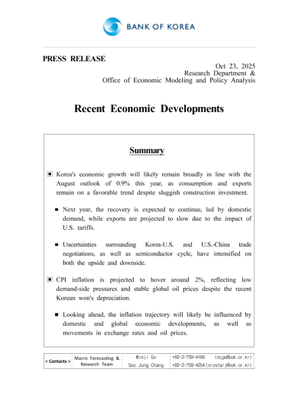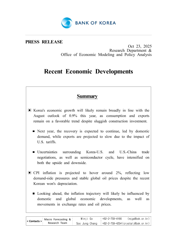 【BANK OF KOREA】【202510】Recent Economic Developments-8页