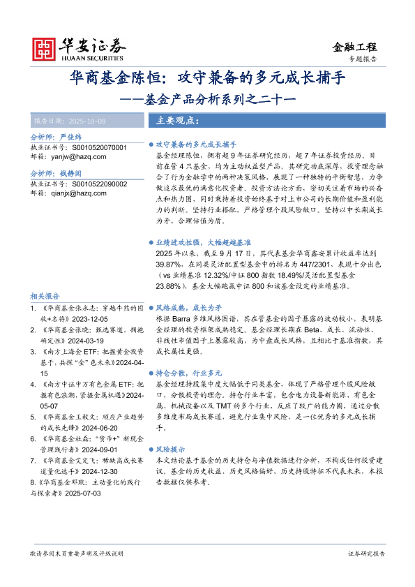 【华安证券】【202510】华商基金陈恒:攻守兼备的多元成长捕手-19页