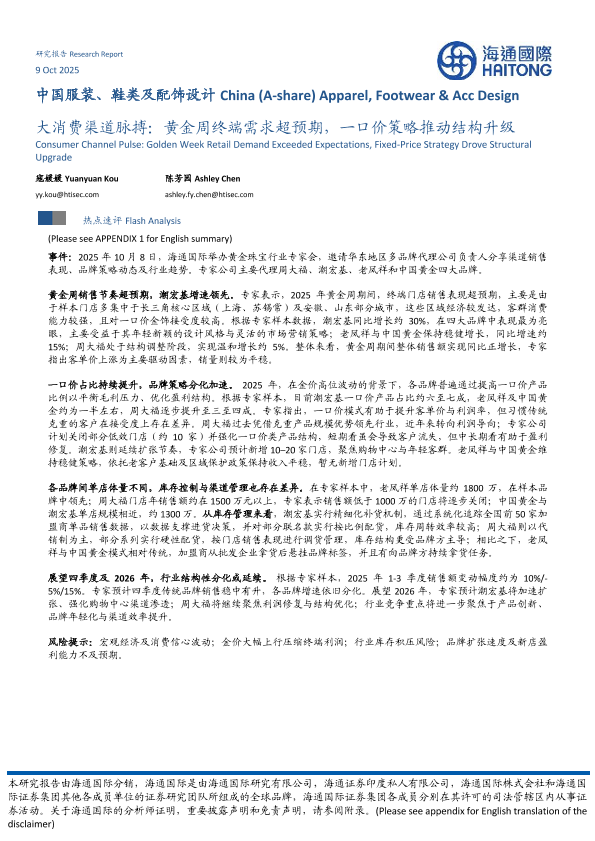 【海通国际】【202510】大消费渠道脉搏:黄金周终端需求超预期,一口价策略推动结构升级-8页