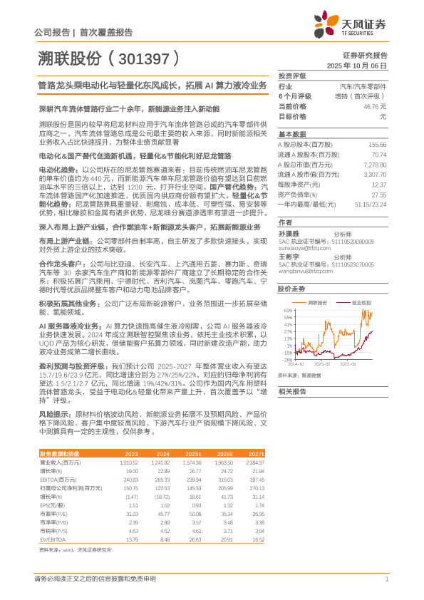 【天风证券】【202510】管路龙头乘电动化与轻量化东风成长,拓展AI算力液冷业务-24页