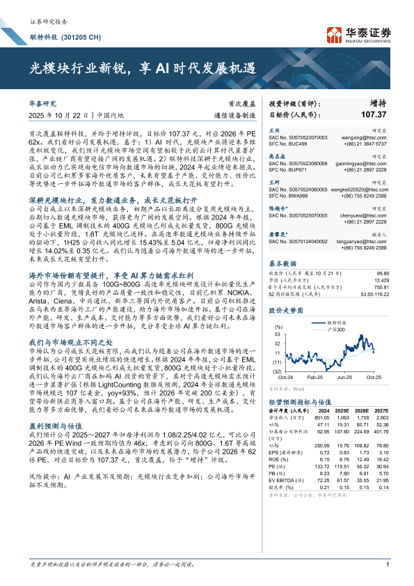 【华泰证券】【202510】光模块行业新锐,享AI时代发展机遇-26页