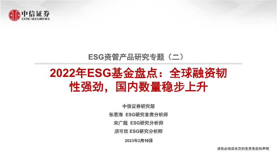 【中信证券】【20230210】ESG资管产品研究专题(二):2022年ESG基金盘点,全球融资韧性强劲,国内数量稳步上升-31页