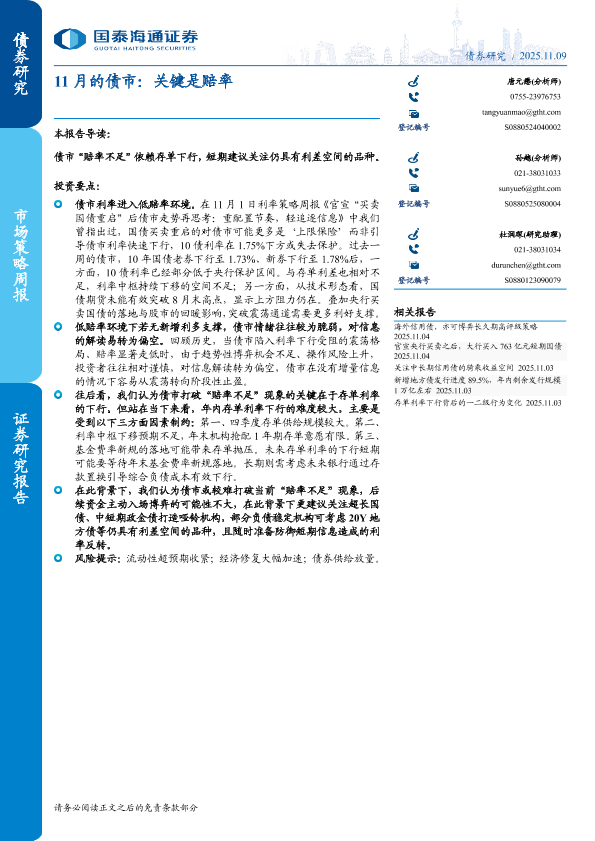 【国泰海通证券】【202511】11月的债市:关键是赔率-12页