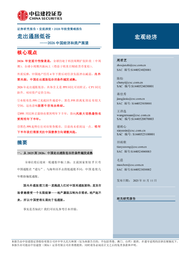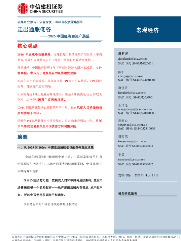 【中信建投证券】【202511】走出通胀低谷——2026中国经济和资产展望-39页