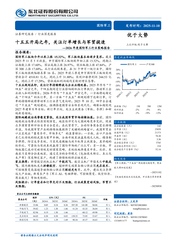 【东北证券】【202511】2026年度国防军工行业策略报告:十五五开局之年,关注订单增长与军贸提速-53页
