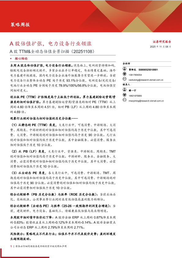【西部证券】【202511】A股估值扩张,电力设备行业领涨-16页
