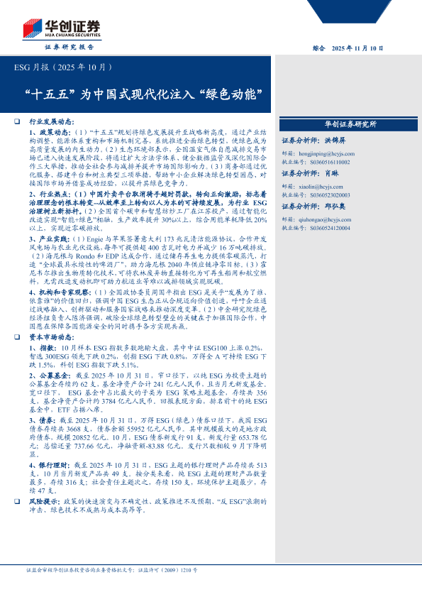【华创证券】【202510】ESG月报(2025年 10月):“十五五”为中国式现代化注入“绿色动能”-13页