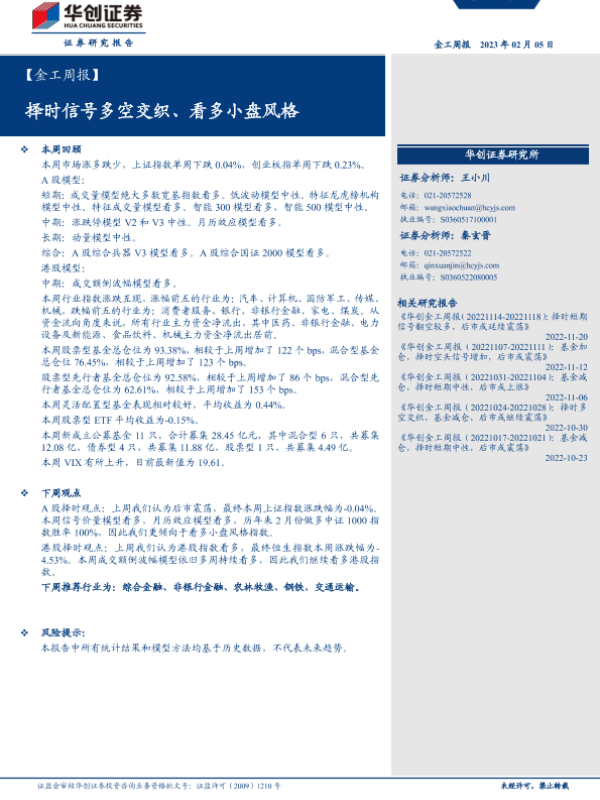 【华创证券】【20230205】【金工周报】择时信号多空交织、看多小盘风格-37页