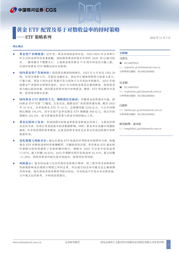 【银河证券】【202511】黄金ETF配置及基于对数收益率的择时策略-26页