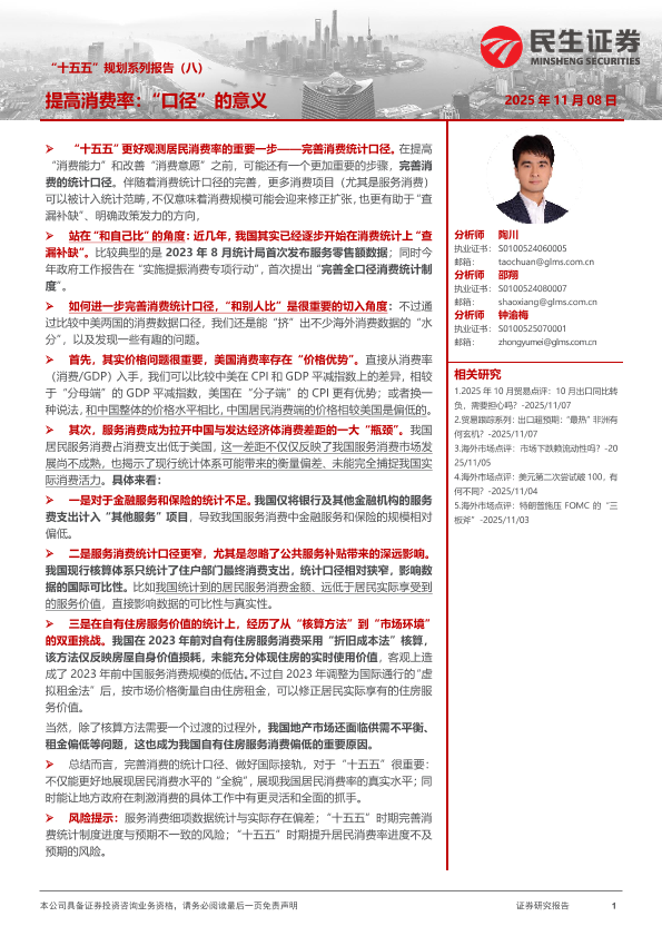 【民生证券】【202511】“十五五”规划系列报告(八)提高消费率:“口径”的意义-12页