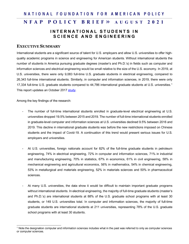 【美国国家政策基金会】【202108】阻止中国研究生进入美国大学可能对美国的创新和科学研究造成重大打击-16页